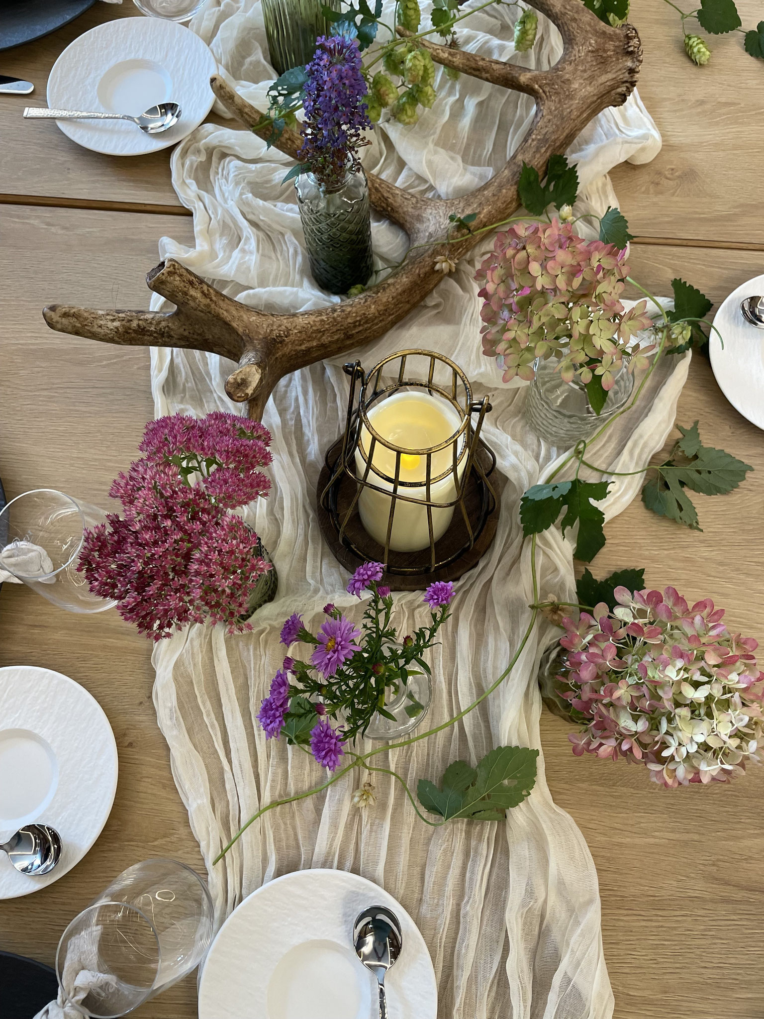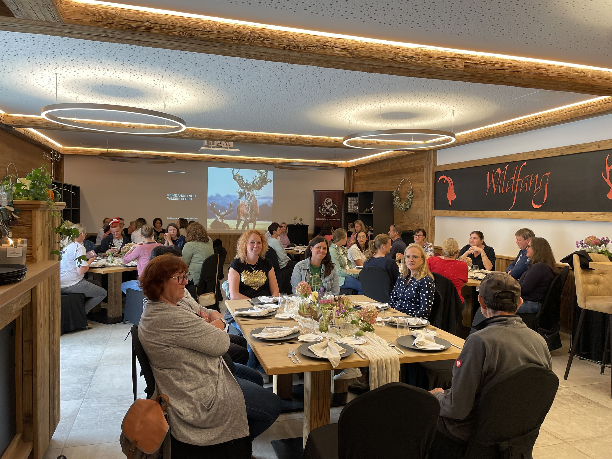 Zunächst durften die Mütter die beeindruckenden Tiergehege erkunden: vom Hirschgehege bis zu den majestätischen Steinböcken gab es viel zu sehen und zu staunen. Auf dem Hof gab es für das Auge viel zu entdecken: liebevoll gestaltete Ecken, herbstliche Dekorationen und originelle Arrangements, die Freude machten. Auch die Tische waren wunderschön gedeckt, und das gemütliche Ambiente lud ein, etwas länger sitzen zu bleiben.