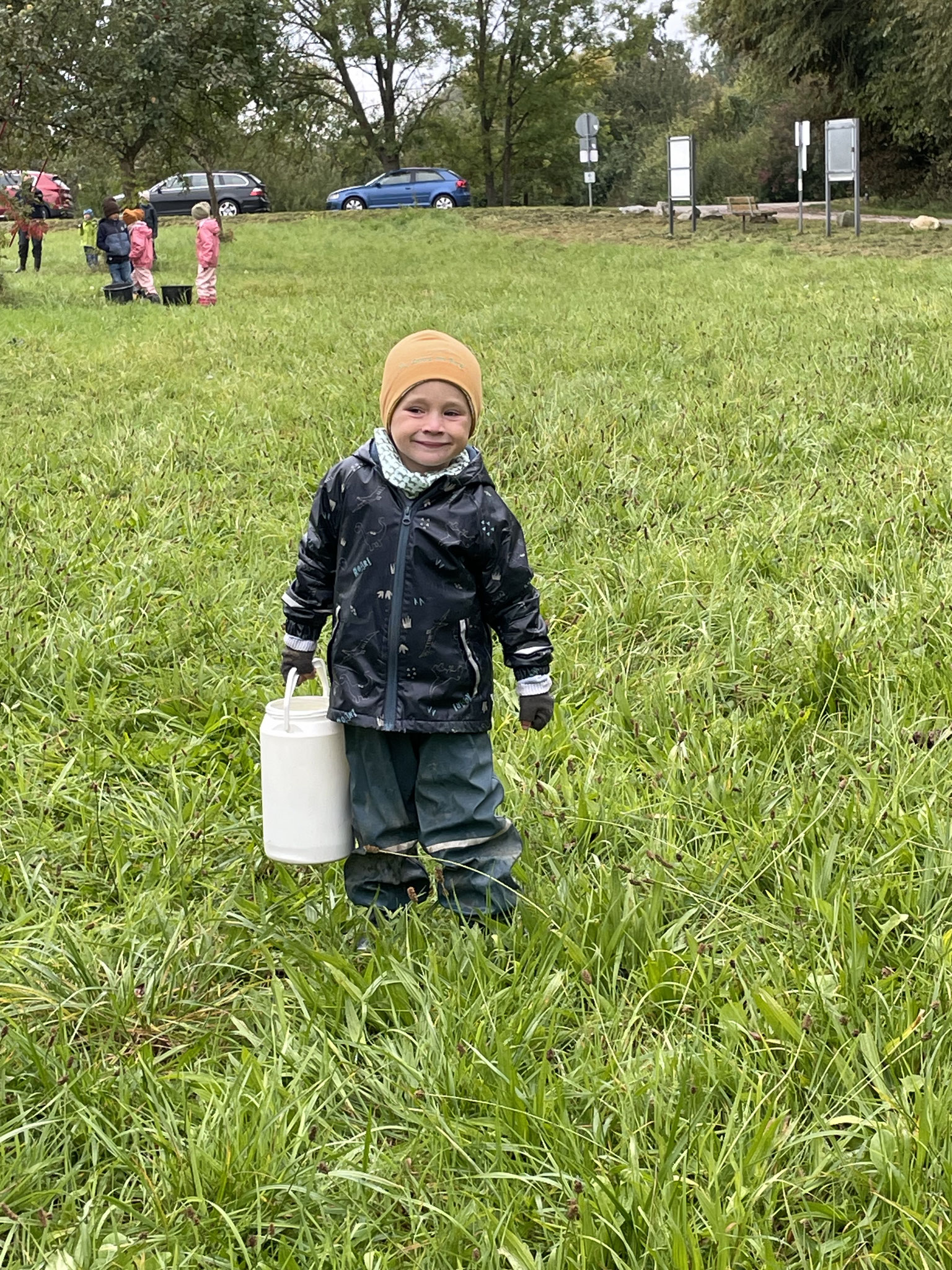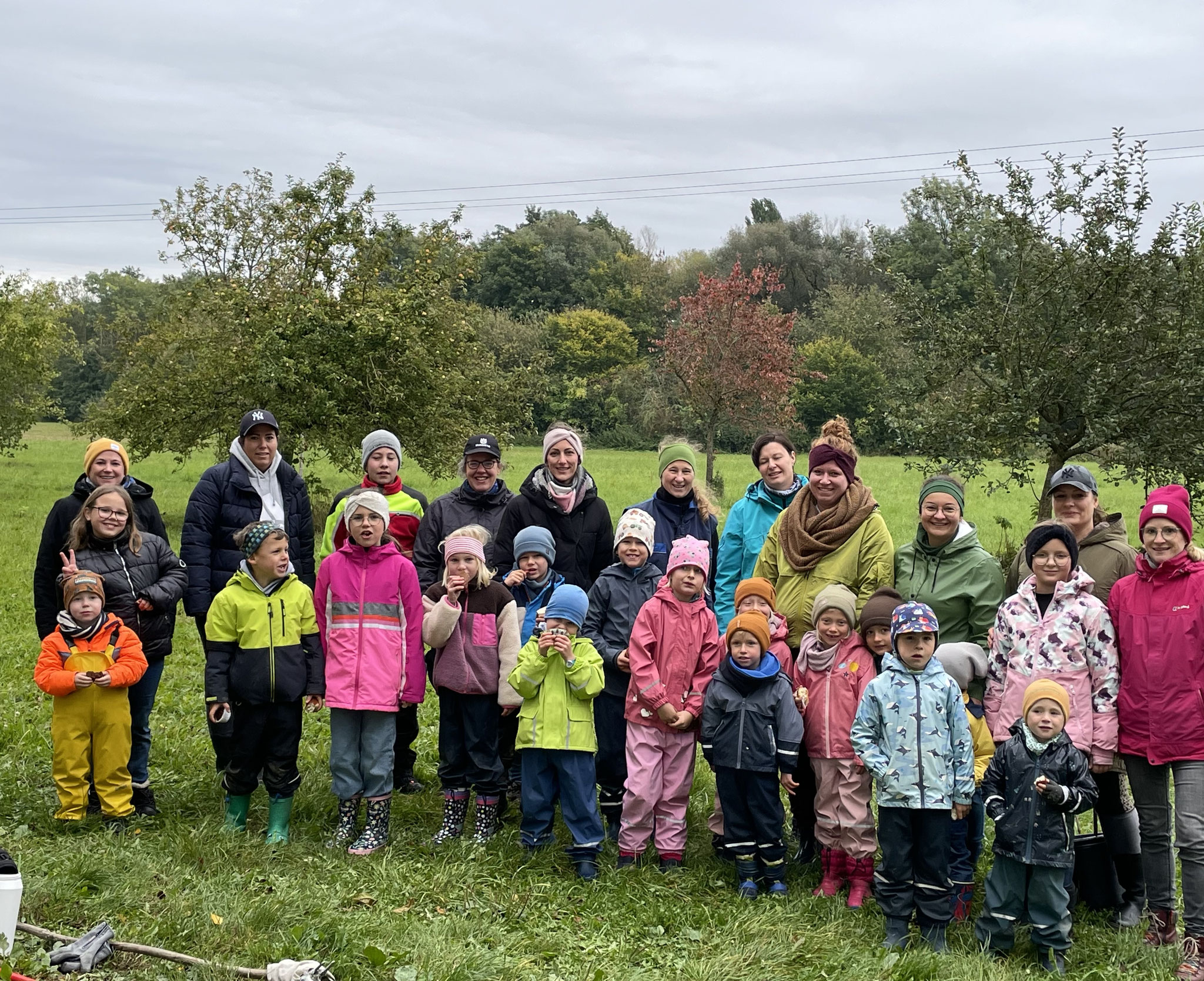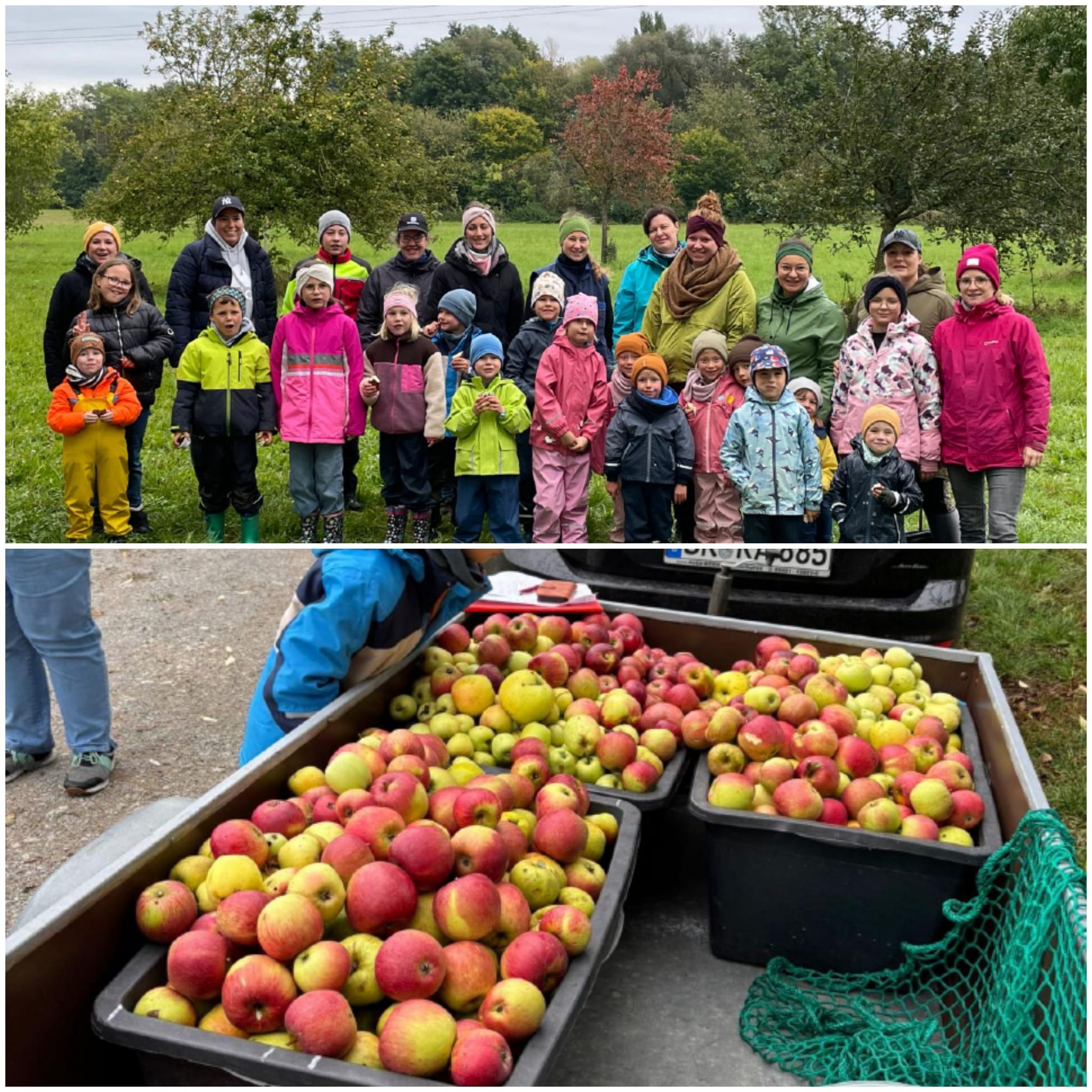 die spannende Streuobstwiesen-Rallye, und Nicole erstellte mit den Kindern aus Filz kleine Meisterstücke. Der Höhepunkt für die Kinder war die Apfelernte auf der Streuobstwiese: Aus 650 kg Äpfeln