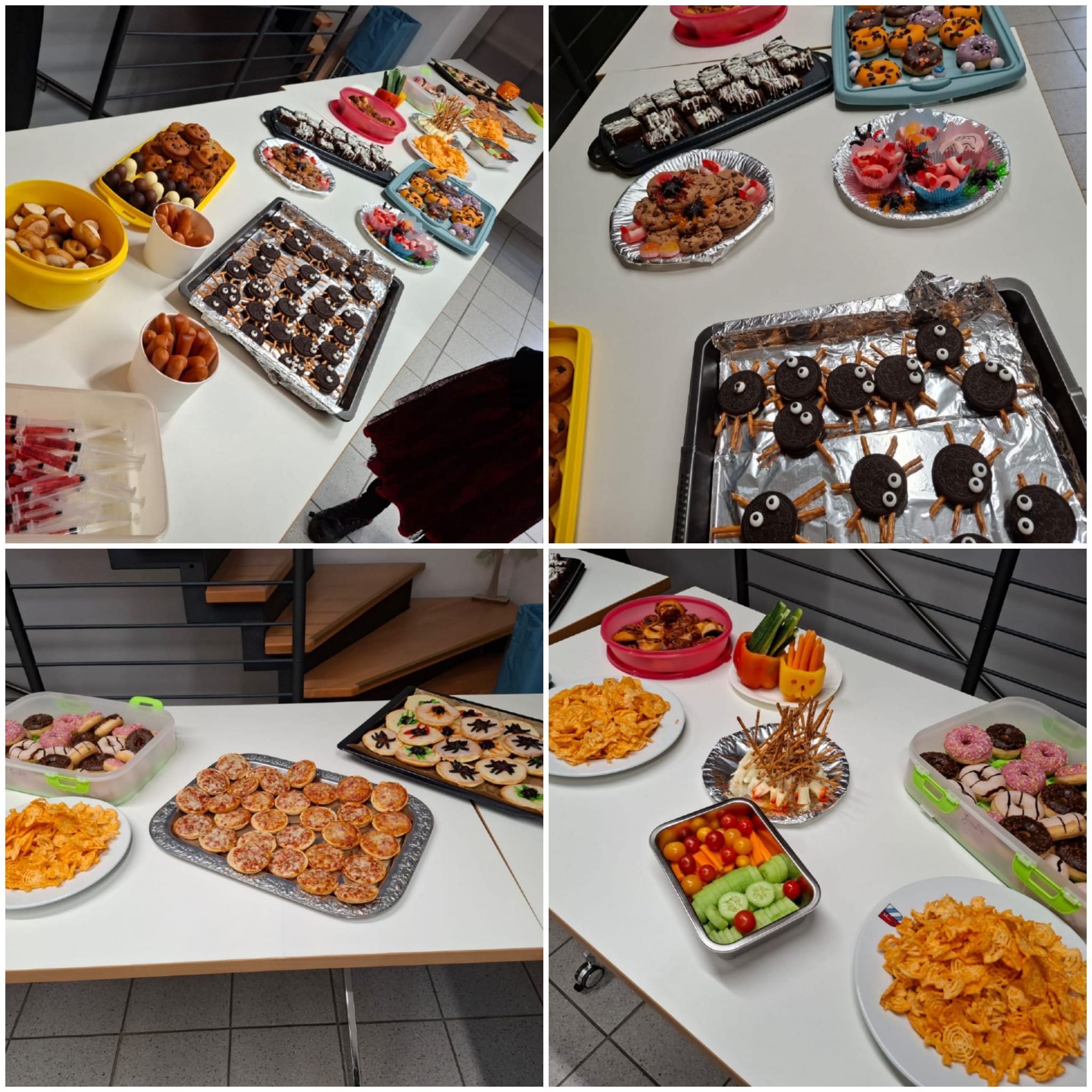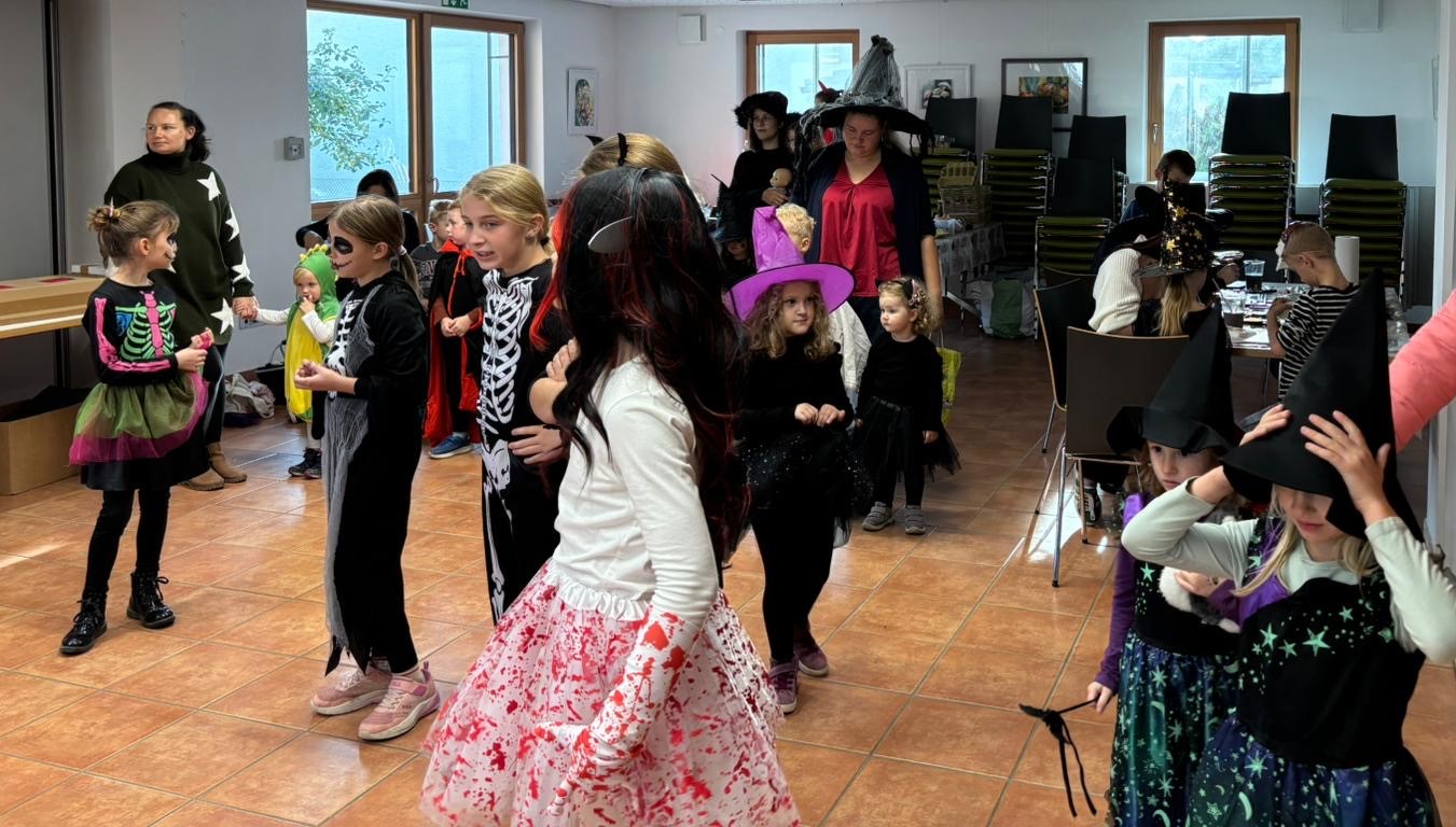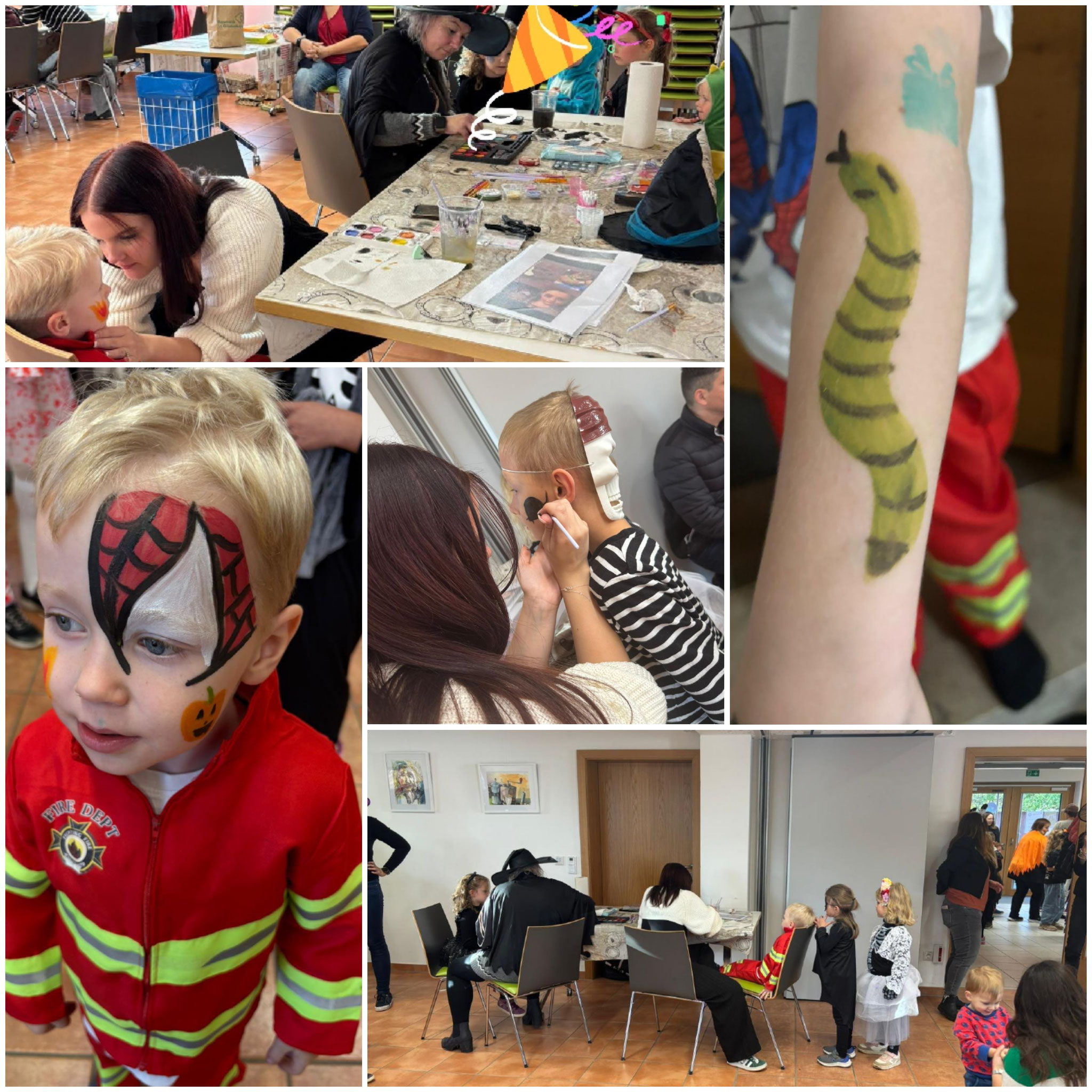 Am Basteltisch entstanden Hexenhüte und -besen, Gespenstertüten, Lampionsgesichter, Kochlöffelgespenster und vieles mehr. Am Schminktisch verwandelten sich die Kinder in gruselige, lustige oder geheimnisvolle Gestalten – von Spinnen und Geistern bis hin zu kleinen Vampiren.
