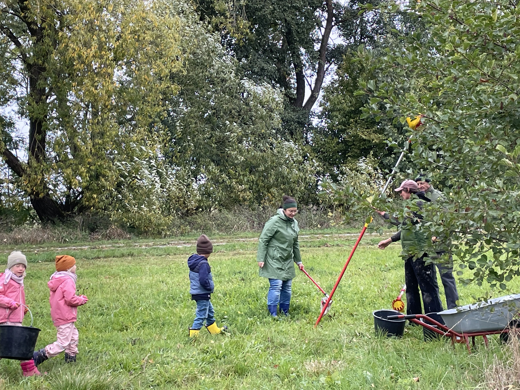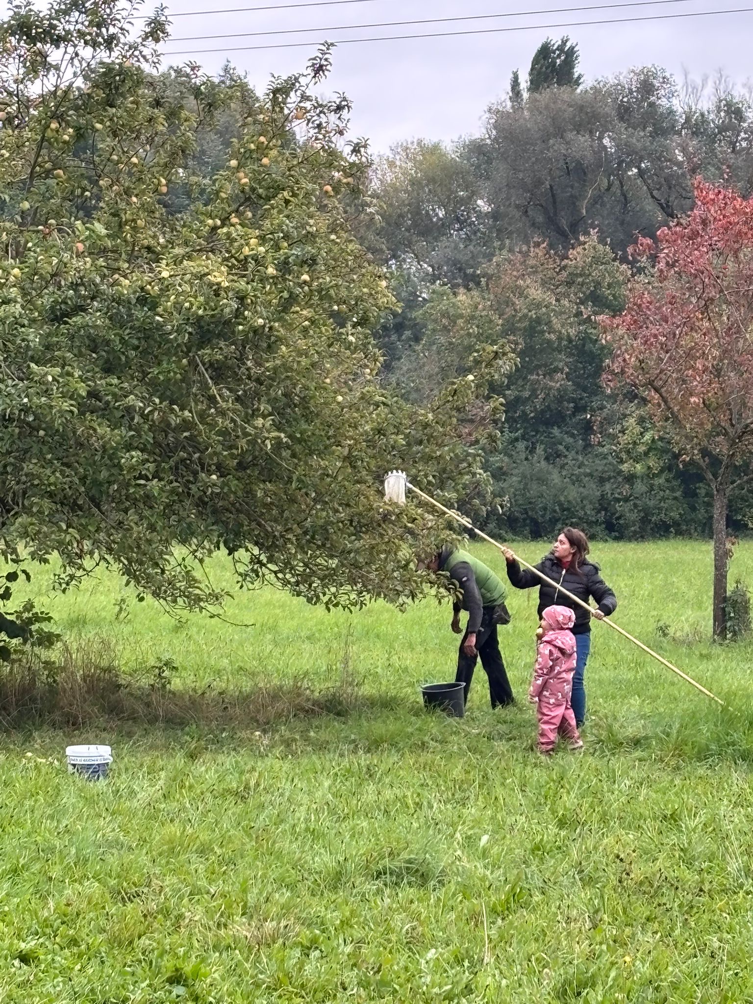 sammelten und pflückten, konnten wir am Nachmittag die Äpfel zum Pressen fahren. Nach getaner Arbeit gab es noch eine kleine Stärkung für alle.