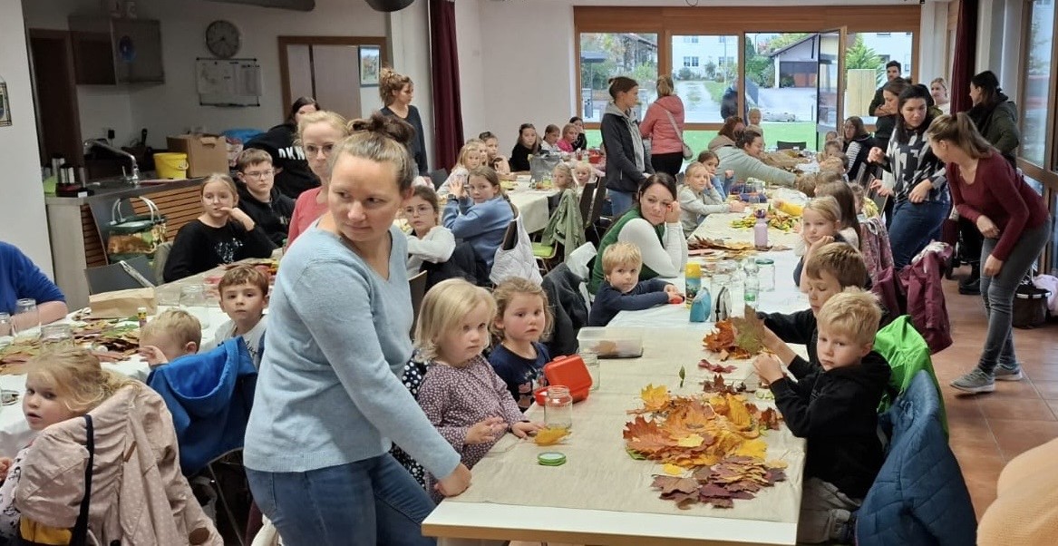 Am Freitagnachmittag, 17. Oktober, trafen sich über 50 Kinder – auf Einladung der Jugendgruppe Löwenzahn – zum kreativen Gestalten mit herbstlichen Farben. Die Kinder hatten zuvor fleißig in der Natur gesammelt und verwandelten nun mit viel Fantasie ihre Schätze in wunderschöne Bilder aus Blättern, glänzende Windlichter, lustige Blättermännchen und vieles mehr.