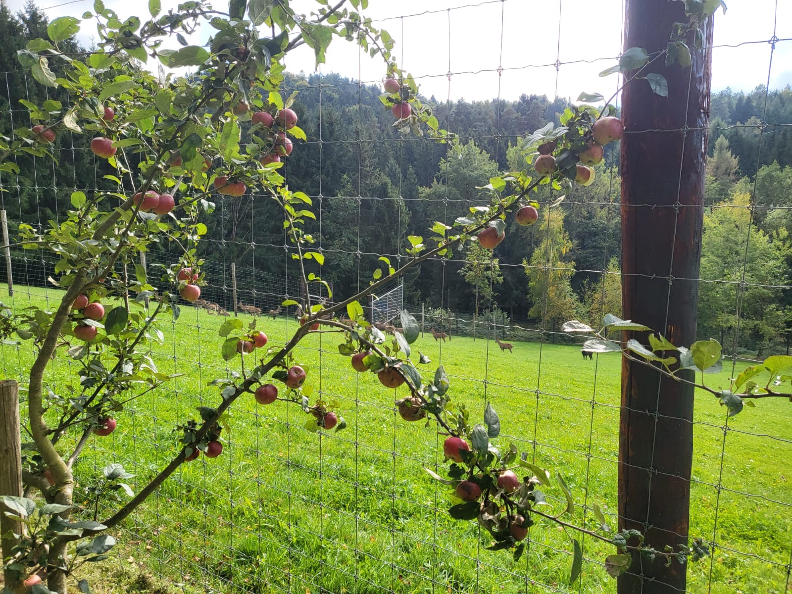 Die Äpfel und Birnen, die sich noch auf den Bäumen befinden, dienen im Winter den Wildtieren als Nahrung.